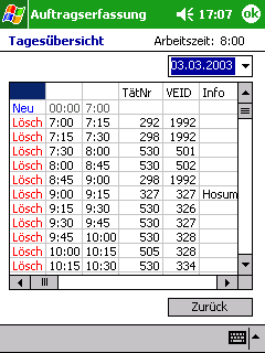 PocketPC und überträgt die Arbeitszeitdaten in die As/400 Datenbank.